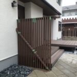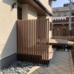 道路からの、視線を、目隠しフェンスで隠したいが 目隠しフェンスを、高さ1500以上すると圧迫感が生まれます。 さりげなく目隠しを、縦格子ですると 圧迫感なくデザインに溶け込めます。